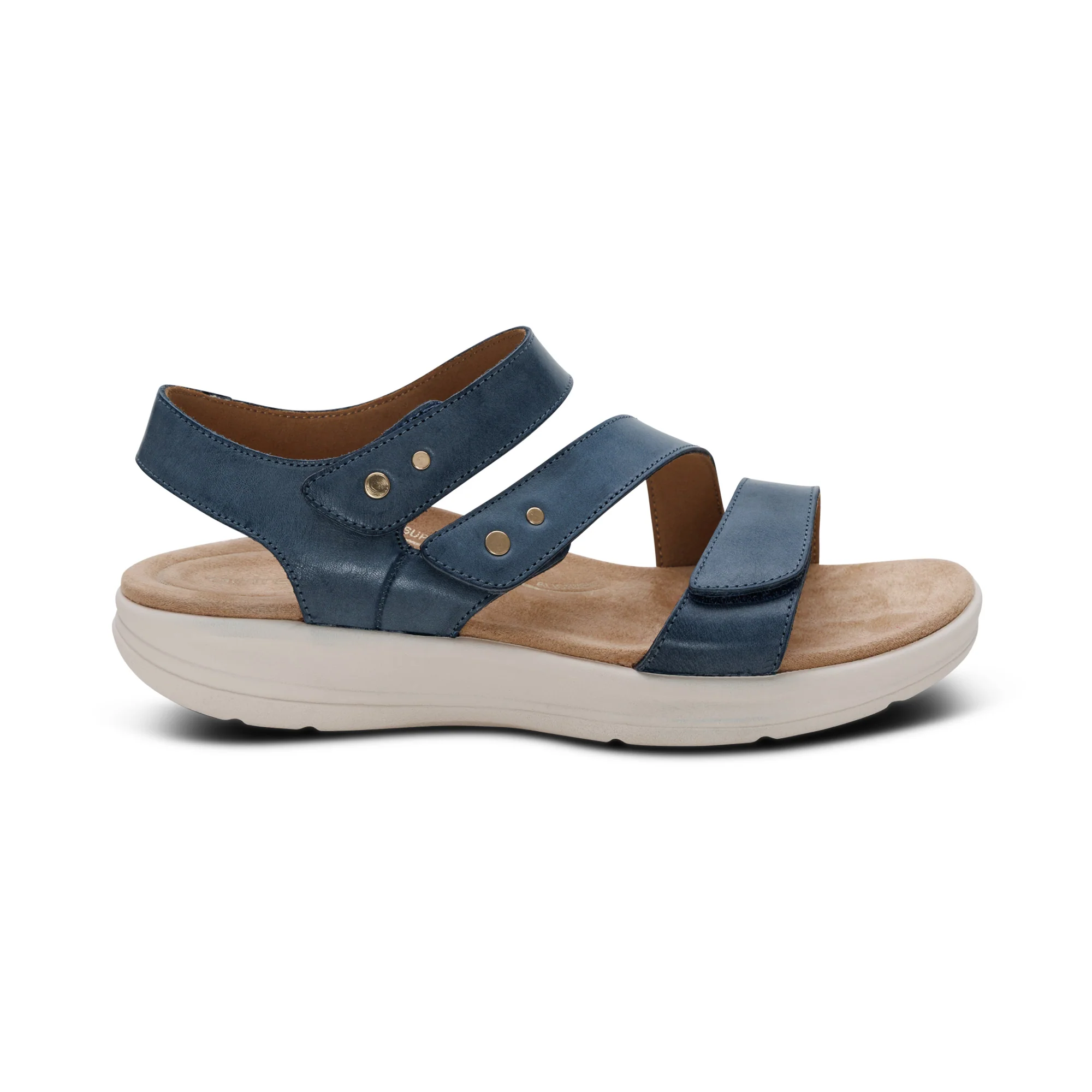 Experience next-level comfort with Savannah, a fully adjustable quarter-strap sandal, designed with innovative BioRocker™ Technology for a natural, effortless stride. Hook & loop provide a secure, customized fit, while the premium leather upper adds durability and style. The EVA midsole and rubber outsole deliver lightweight support and traction. The SkyTech™ microfiber-wrapped footbed, cobra heel pressure relief, and raised met-pad cushion offer targeted comfort and all-day cushioning. Each Aetrex shoe is anatomically designed based on data and learnings from over 50 million global foot scans. This ensures you’re getting the best fit for your feet and premium support for your body from the ground up.