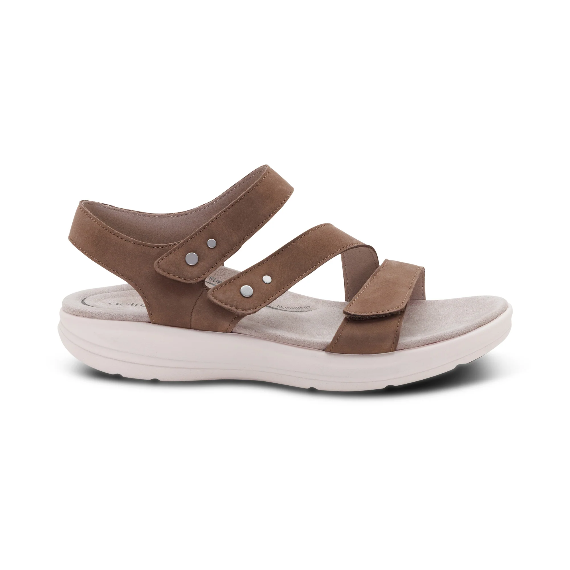 Experience next-level comfort with Savannah, a fully adjustable quarter-strap sandal, designed with innovative BioRocker™ Technology for a natural, effortless stride. Hook & loop provide a secure, customized fit, while the premium leather upper adds durability and style. The EVA midsole and rubber outsole deliver lightweight support and traction. The SkyTech™ microfiber-wrapped footbed, cobra heel pressure relief, and raised met-pad cushion offer targeted comfort and all-day cushioning. Each Aetrex shoe is anatomically designed based on data and learnings from over 50 million global foot scans. This ensures you’re getting the best fit for your feet and premium support for your body from the ground up.